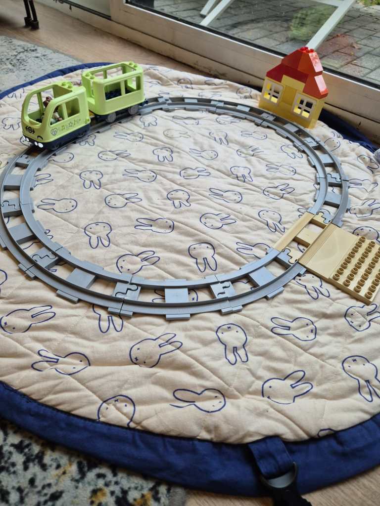 We nemen ook altijd een speelkleed mee. Dat gebruiken we als warm hoekje én als mini-speelruimte. Zeker in de winter zijn de vloeren soms koud, en zo creëer je een cozy plek voor je peuter met zijn/ haar eigen speelgoed.